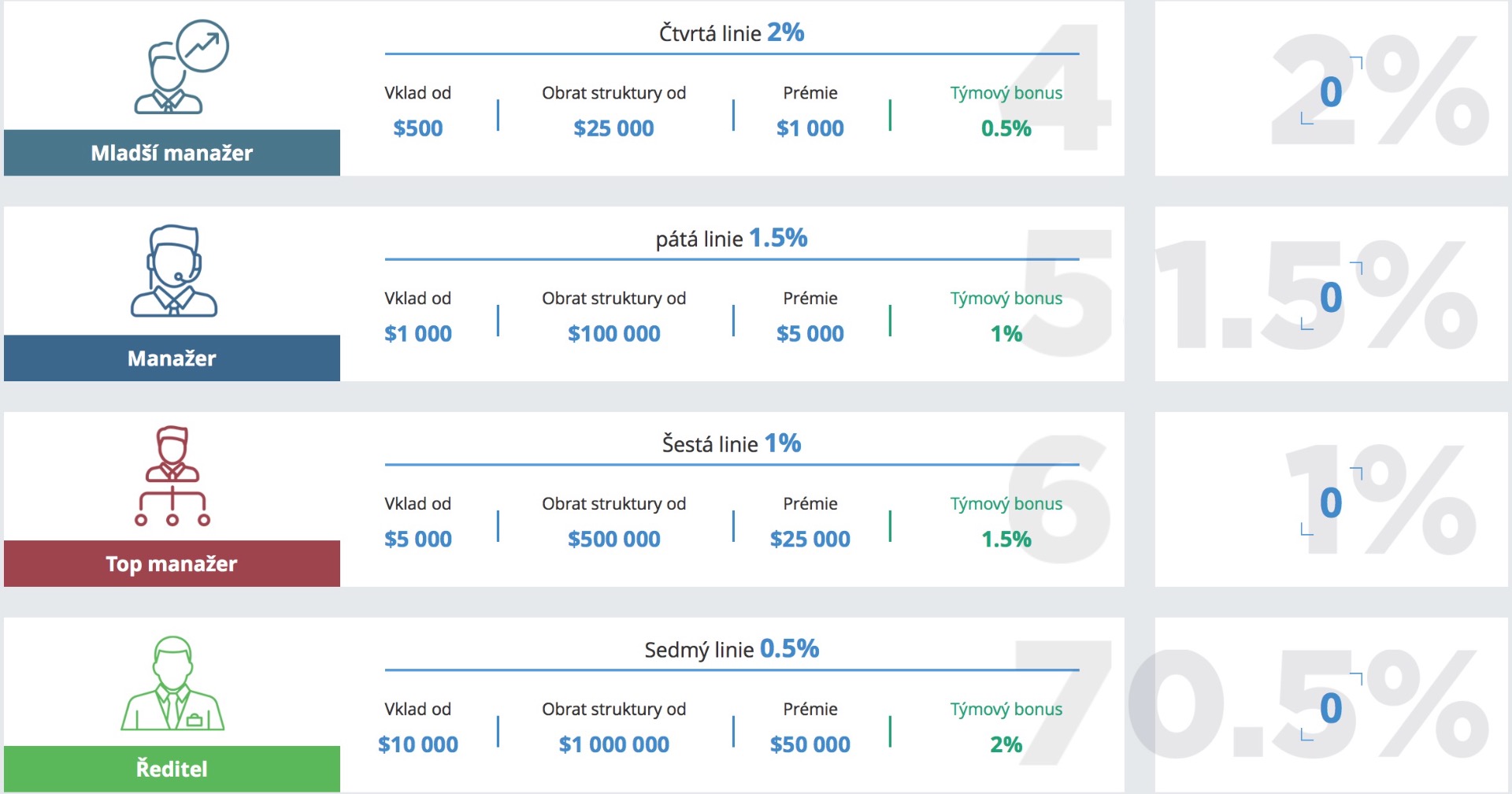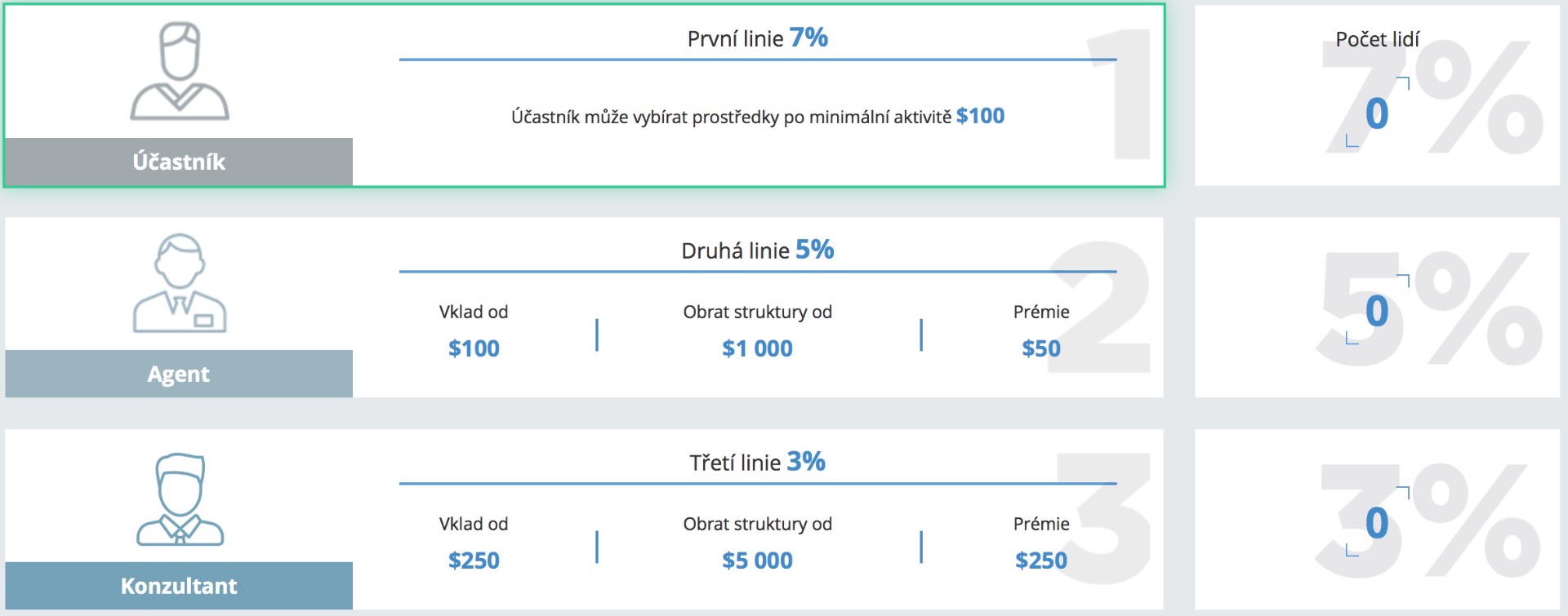 Partnerský program: 1.línia 7%, 2.línia 5%, 3.línia 3%