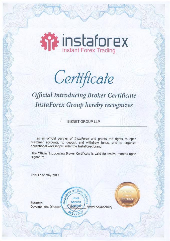 Biznes je oficiálnym partnerom spoločnosti instaforex, čim získava právo predávať svoj projekt na finančných trhoch. Organizovať semináre po celom svete.